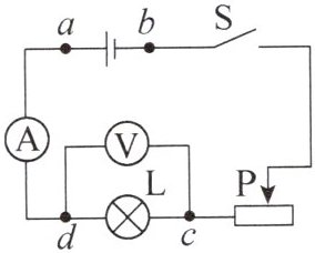 14. 如图所示的电路中,闭合开关后,发现小灯泡不亮。小明检查电路故障时,用一个电压表分别测得电路中某两点之间的电压值,发现U_ab = U_ac = U_bd = 3 V,由此判断,电路故障为(