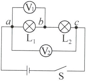 (1)按照电路图正确连接电路后,需要测出a、b,b、c,a、c之间的电压。闭合开关S,发现电压表$V_1$和$V_2$的指针偏转角度相同,可能的原因是_________(选填$“V_1”$或$“V_2”)$的测量范围选大了。