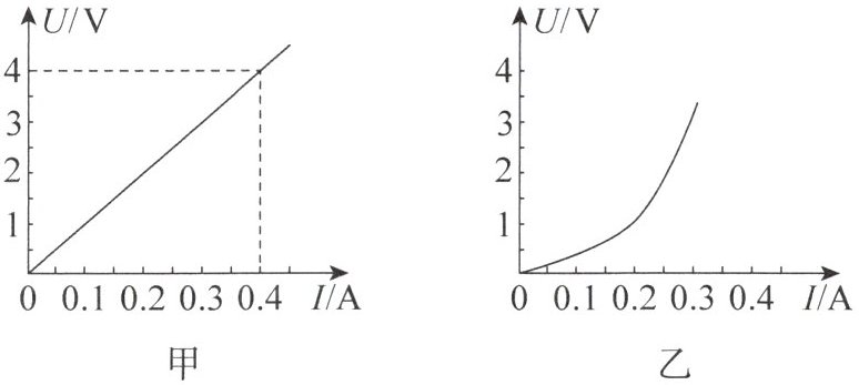 4. 在用电流表和电压表测量电阻的实验中,有两位同学分别选用定值电阻和小灯泡为测量对象,在处理实验数据时,画出定值电阻和小灯泡的$U-I$图像分别如图甲、乙所示。下列说法错误的是(