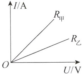 6. (多选) 材料和长度均相同的两根金属丝甲、乙的横截面积分别为 $ S_{甲} $、$ S_{乙} $,电阻分别为 $ R_{甲} $、$ R_{乙} $,它们的 $ I-U $ 图像如图所示。将甲、乙串联在电路中,通过它们的电流分别为 $ I_{甲} $、$ I_{乙} $,它们两端的电压分别为 $ U_{甲} $、$ U_{乙} $,则下列判断正确的是(