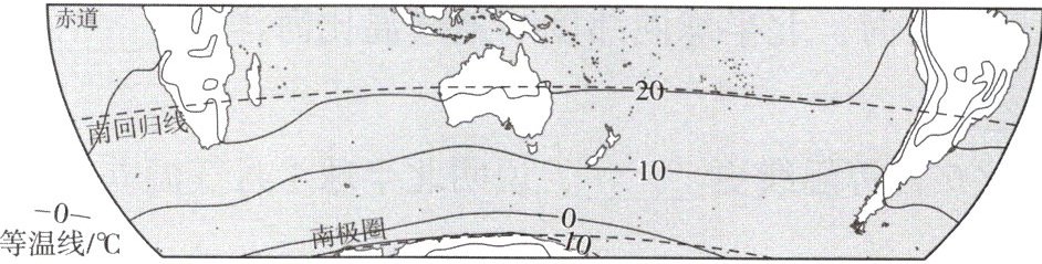 下图为南半球年平均气温的分布图。读图,完成5~6题。