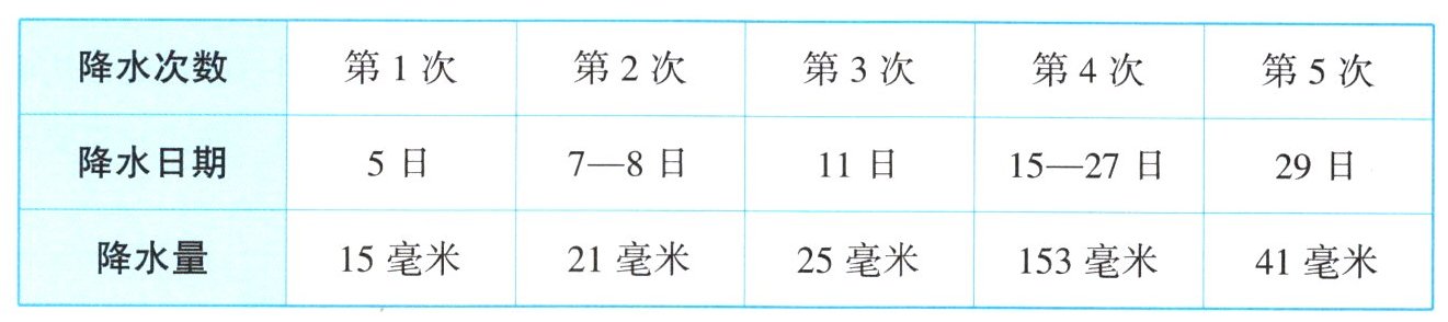 )。4. 该学校本月有五次降水,地理兴趣小组观测记录的结果如下表所示。该学校当月的降水量为(