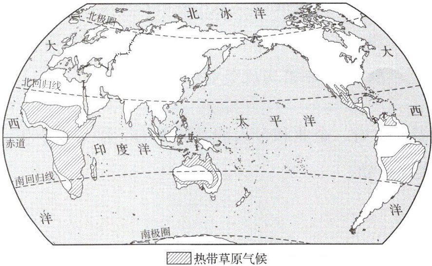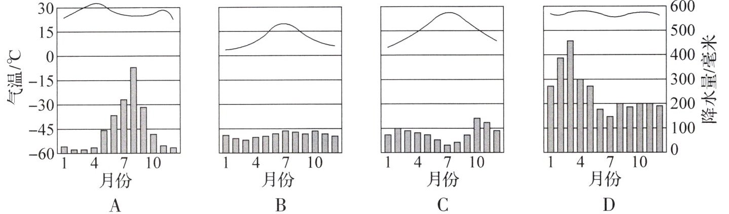 7. 下列气温曲线和降水量柱状图,表示热带草原气候的是(