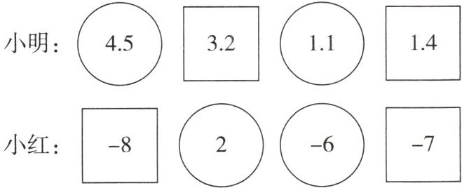 小红:$□{-8}$ $◯{2}$ $◯{-6}$ $□{-7}$