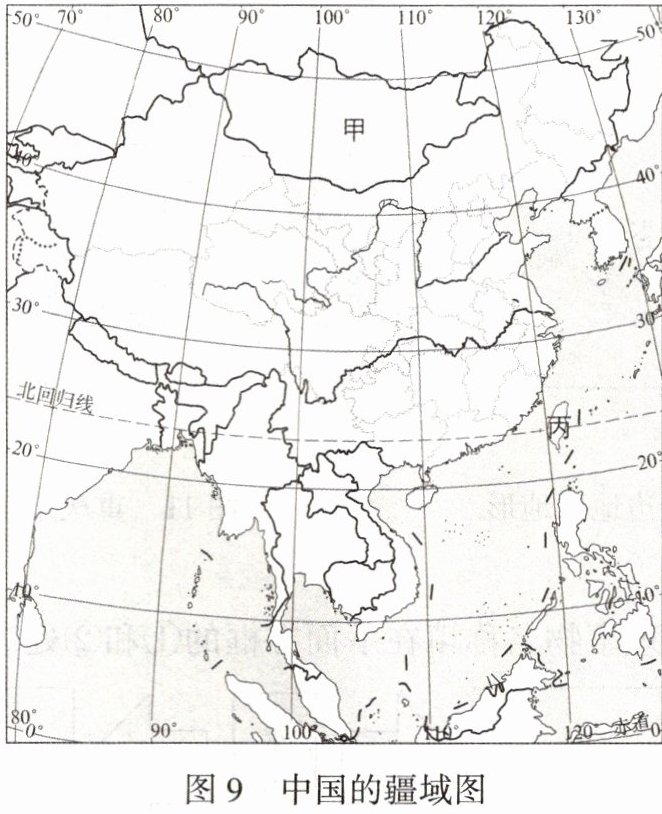 21. 了解国家版图,树立国家版图意识是每一位中国公民应尽的义务和责任。读图 9,回答下列问题。