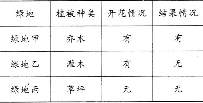 学校有三块绿地,同学们通过调查并记录了这个时期绿地植被情况。