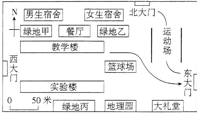 方向。(5)教学楼和实验楼之间的实地直线距离大约有