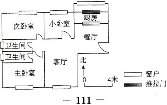 14. 如果图上客厅的宽度是1厘米,根据比例尺,可算出客厅的实地宽度是(