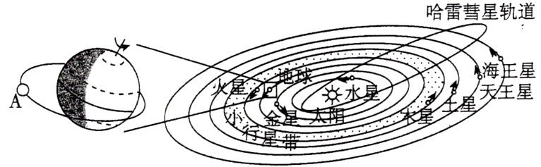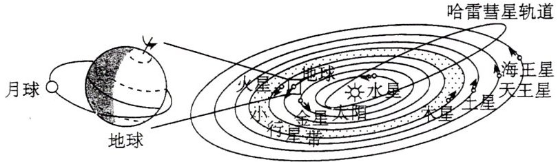 地球是太阳系八颗行星之一。地球与月球组成一个天体系统——地月系统。地球是目前宇宙中已知唯一存在生命的天体,是适合人类生存的唯一家园。下图为太阳系模式图(非真实比例)。读图,完成1~2题。