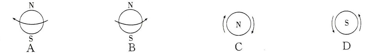 11. 用地球仪演示地球的自转方向,以下四幅图中示意正确的是(
