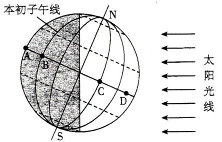 读地球光照示意图,完成10~11题。