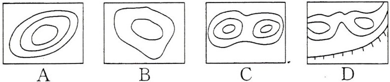 4. 在白纸上绘出“土豆山”的等高线地形图应是(