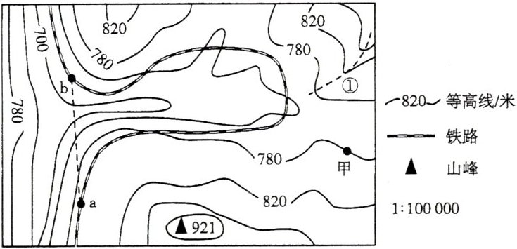 下图为我国某地等高线地形与铁路线路分布图。据此完成(1)~(2)题。