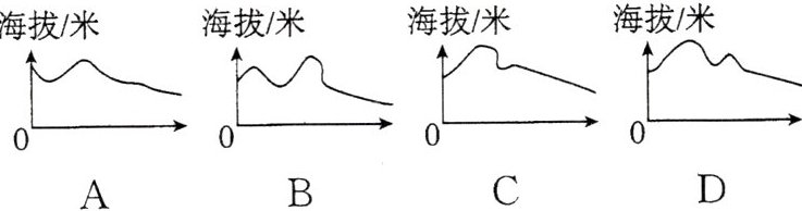 7. 地形剖面图可以更直观地表示地面上沿某一个方向地势的起伏和坡度的陡缓。以下四幅地形剖面示意图中,最接近EF剖面线的是(