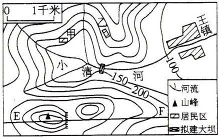在等高线地形图上,可以判断地形类型和海拔。结合我国某区域等高线地形图,完成6~7题。
