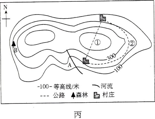 。(4)图丙是标注了地图“语言”的等高线地形图,其中缺少