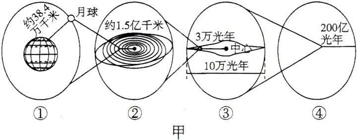 (1)图甲示意不同级别的天体系统。其中,③天体系统的名称是
