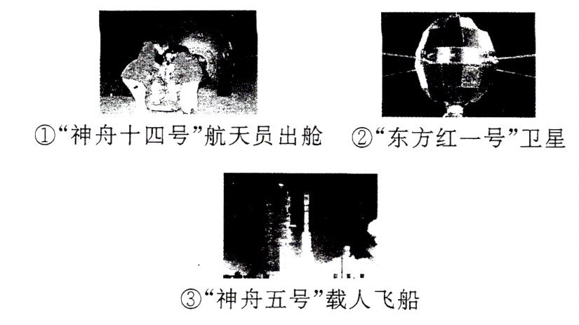 )①“神舟十四号”航天员出舱 ②“东方红一号”卫星