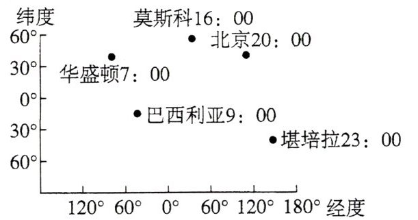 的人们后看到日出。同一瞬间,不同经度的地方,地方时