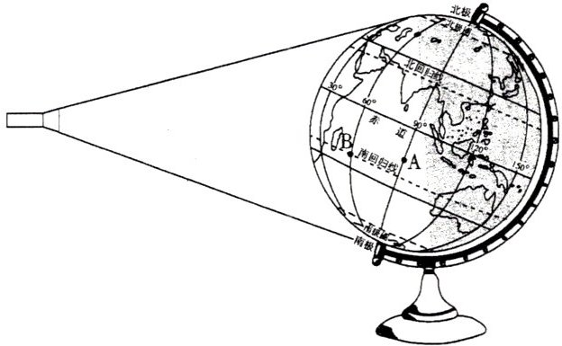 (3)按地球自转方向旋转地球仪,图中A、B两点先迎来日落的是