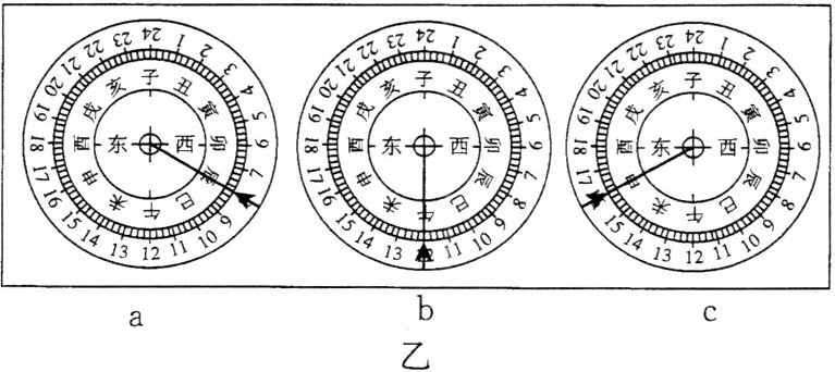 (传统文化)日晷(图甲)是我国古代利用日影测得时刻的一种计时仪器,其原理是利用晷针的影子在晷面上移动的位置来显示时刻变化。图乙为晷针影子移动示意图。据此完成5~6题。