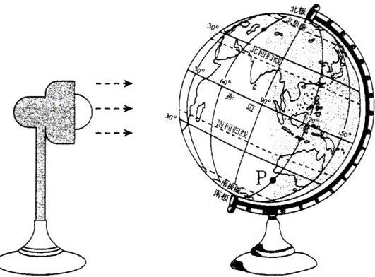 (1)P点此刻正值日落,随着地球自转一周,P点再次经历日落的时间间隔是(