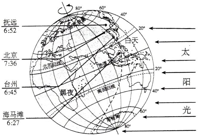 (4)北京昼短夜长,且昼渐长,夜渐短。