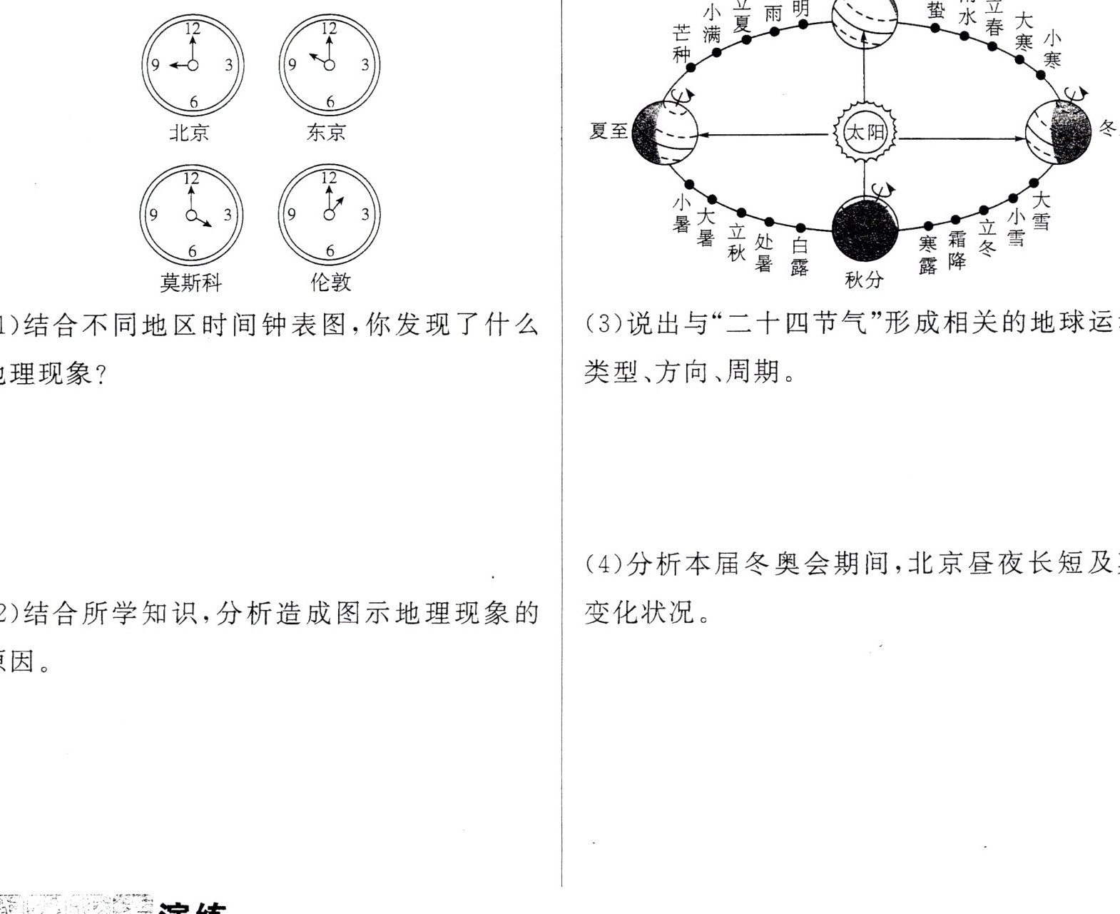(1)结合不同地区时间钟表图,你发现了什么地理现象?