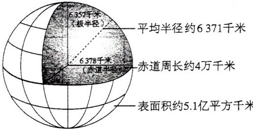 (3)地球是一个两极稍扁、赤道略鼓的不规则球体,地球仪是一个正球体