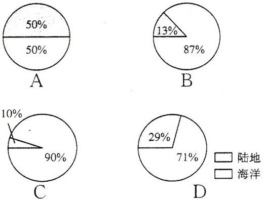 1. 地球表面由陆地和海洋构成,海陆面积差异较大。能正确描述海陆面积比例的是 (