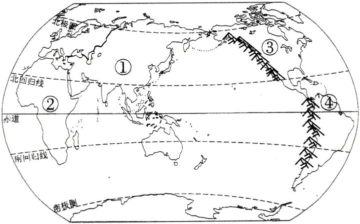 地球表面高低起伏,山高与海深相差悬殊,地表形态复杂。读世界地图,完成 4~6 题。
