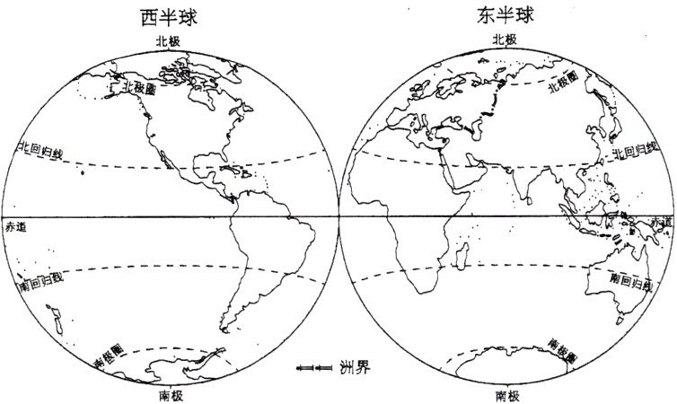 )①非洲地跨南北半球 ②纬度最高的大洲是欧洲 ③面积最大的大洲是非洲 ④南、北美洲主要位于西半球 ⑤南、北回归线同时穿过非洲