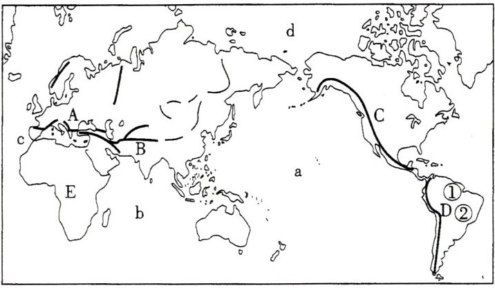 (2)阿尔卑斯 喜马拉雅 亚洲 落基 北美洲 安第斯