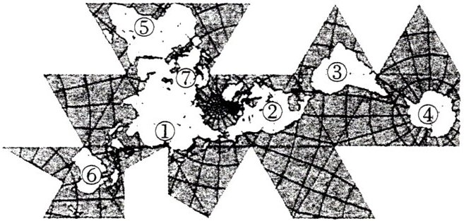地图是地理学的“语言”,几乎所有的地图在绘制时都需要对真实的地表做一定扭曲。下图为戴马克松地图,能有效控制绘制时产生的扭曲。读图,完成 9~10 题。