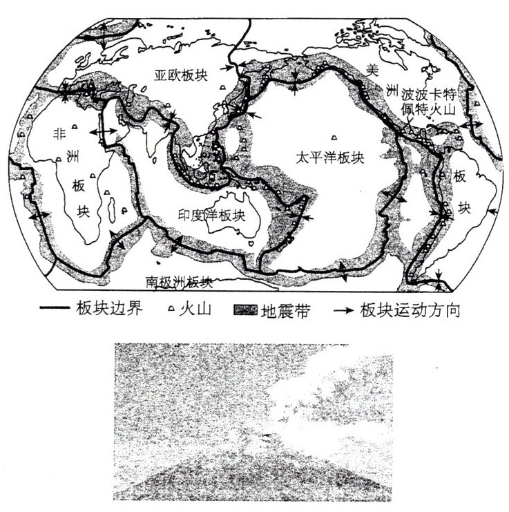 。(4) 用板块知识解释“波波卡特佩特火山是世界上最活跃的火山之一”。