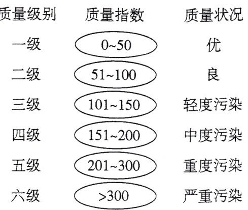 材料一 下图为太原市某年 11 月 10 日天气预报图和空气质量级别、质量指数与质量状况关系图。