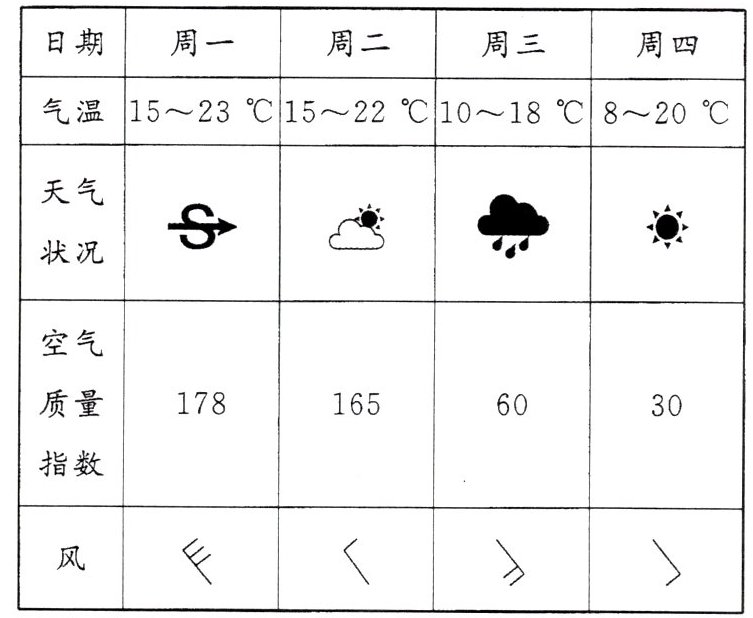 9. 某校计划举行郊游活动,同学们查询了近期天气状况如下表所示。下列说法正确的是( )