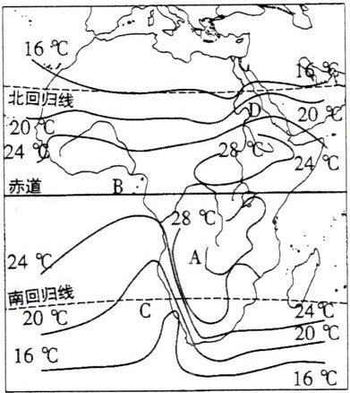 (2)D D处等温线最密集。[探究2]1 根据非洲南部大致位于同一纬度的陆地气温高于海洋,可判断出是非洲1月等温线分布图。[探究3]