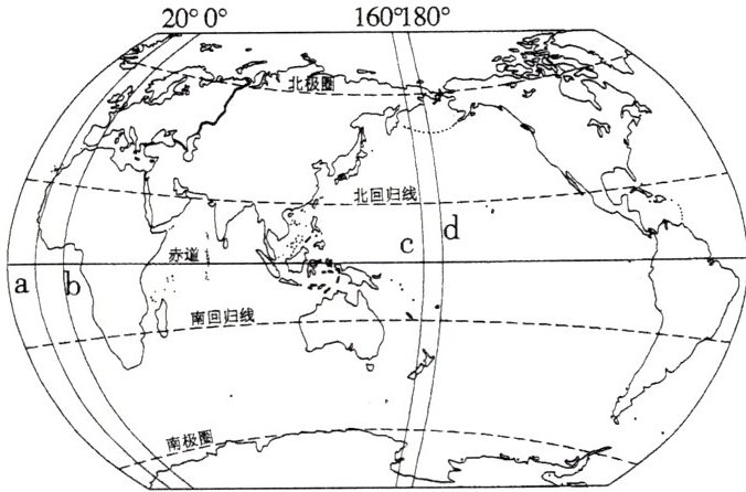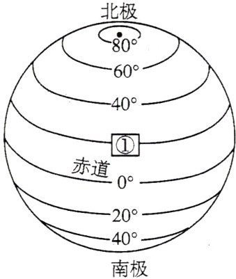 D. 图示①所在的纬线的纬度为$20^{\circ}S$