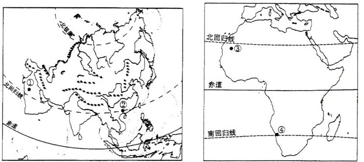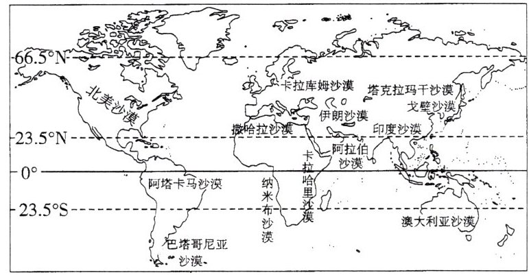 (2)图中亚欧大陆的卡拉库姆沙漠和塔克拉玛干沙漠的成因是(