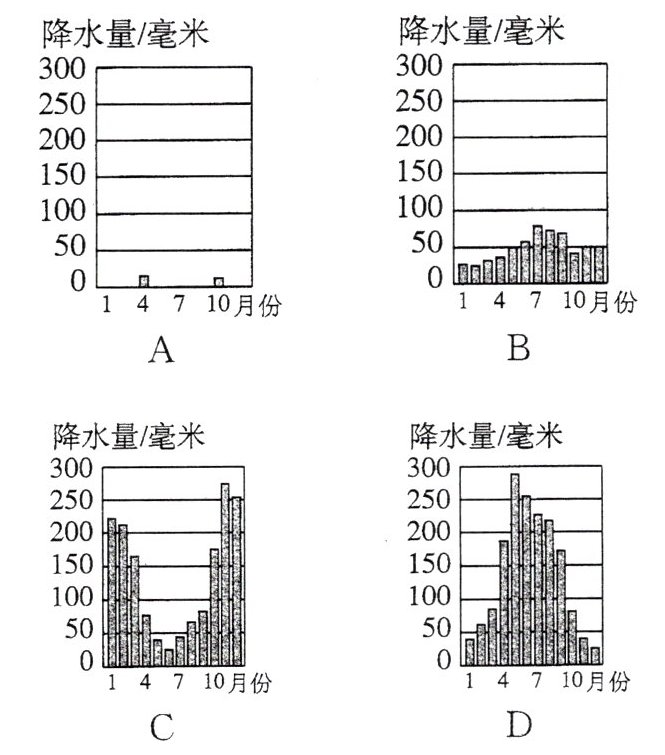 4. 根据表中数据绘制降水量柱状图,下列正确的是(