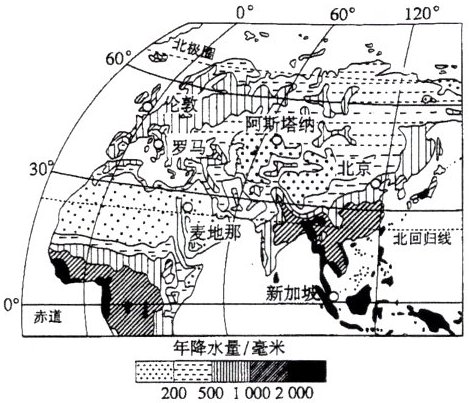 9. 某学校七年级(1)班学生对世界降水量的分布进行了探究学习。结合材料,回答下列问题。