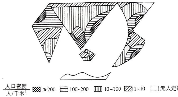 某同学为探究世界人口分布特点,绘制了一幅世界人口分布示意图(如图)。读图,完成 5~6 题。