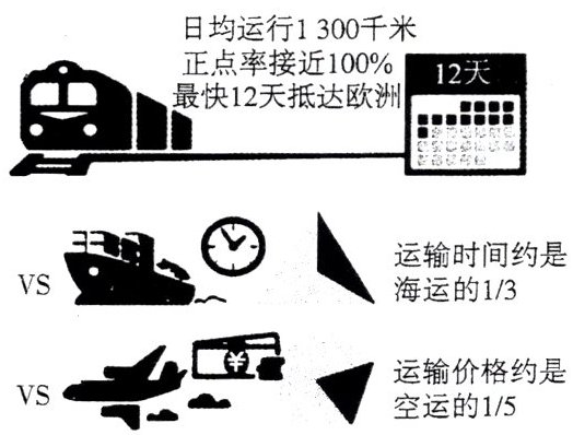 (3)读图并结合所学分析,中欧班列与同起始点的海运相比,具有的优势,与空运相比具有的优势。