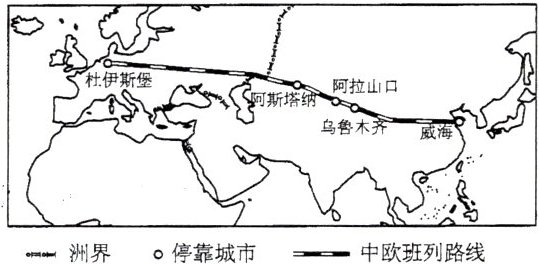 的重要作用。(2)中欧班列跨越亚、欧两大洲,所属的交通运输方式是运输。