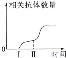 8. 如图,Ⅰ和Ⅱ分别表示某种病毒两次侵入人体的先后时间顺序,曲线表示人体产生抗体的数量变化。下列有关叙述错误的是( )。