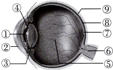 9. 我们能看到丰富多彩的世界,与眼球的结构密切相关。据图回答下列问题。