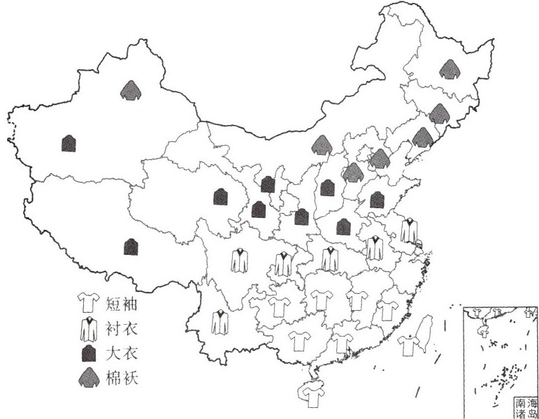 5. 造成全国穿衣建议如图分布的主要原因是( )