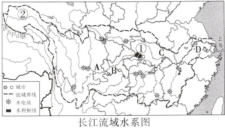 (2)长江水能资源主要集中在______游河段。图中①处是我国最大的水利枢纽工程,其首要功能是______。