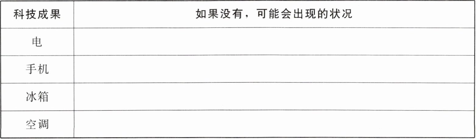 科技与我们的生活息息相关。如果没有下表中提到的这些科技成果,我们的生活会有什么不便?